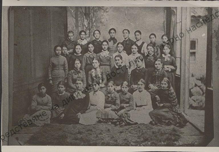 Ученички от педагогическото девическо училище с учителката Ф. Момирова, 1887 г.