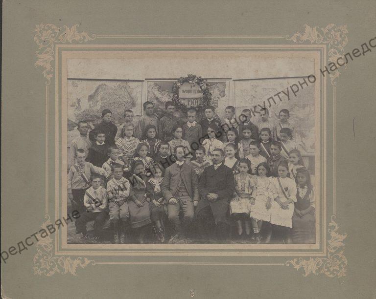 Ученици от IV отделение с учителите Куюмджиев и Величко Свраков през 1907 г., Шумен