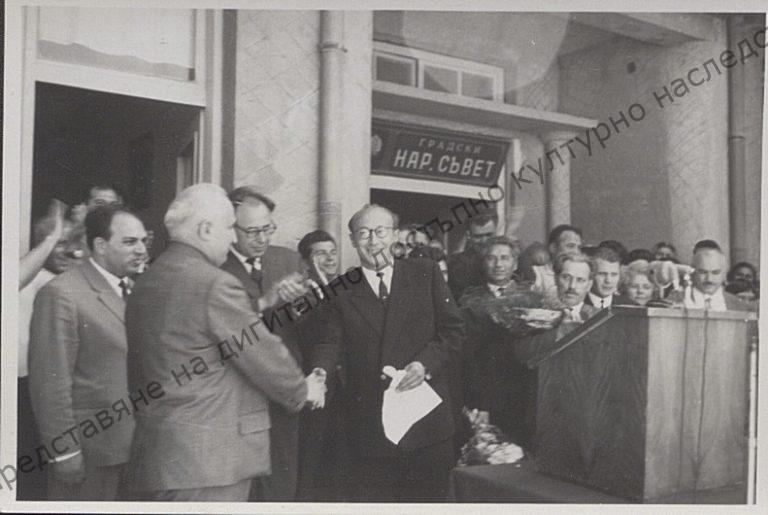 Тодор Живков в гр. Нови пазар. На снимката са още Стефан Вачков, В. Вачков и Рахо Аврамов. 1966 г.