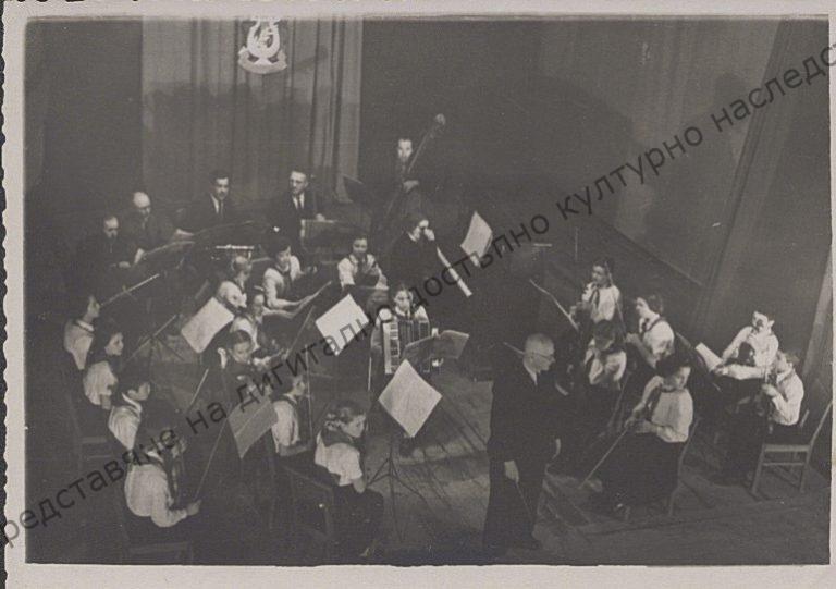 Годишен концерт на детски оркестър при пионерски дом – Коларовград, 1955 г. Ръководител – Георги Димитров