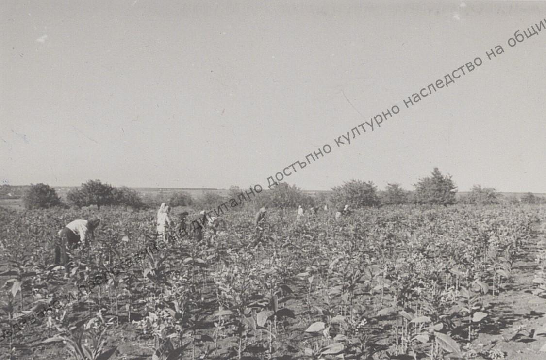 Harvesting tobacco in one of the fields of the cooperative farm in the village of Varbak