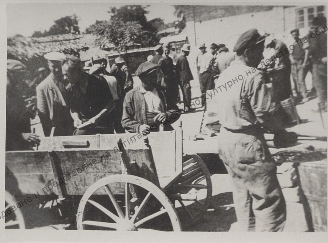 Labour and culture brigade in the village of D-r Stamboliyski. Workers from the town helping villagers, 1945