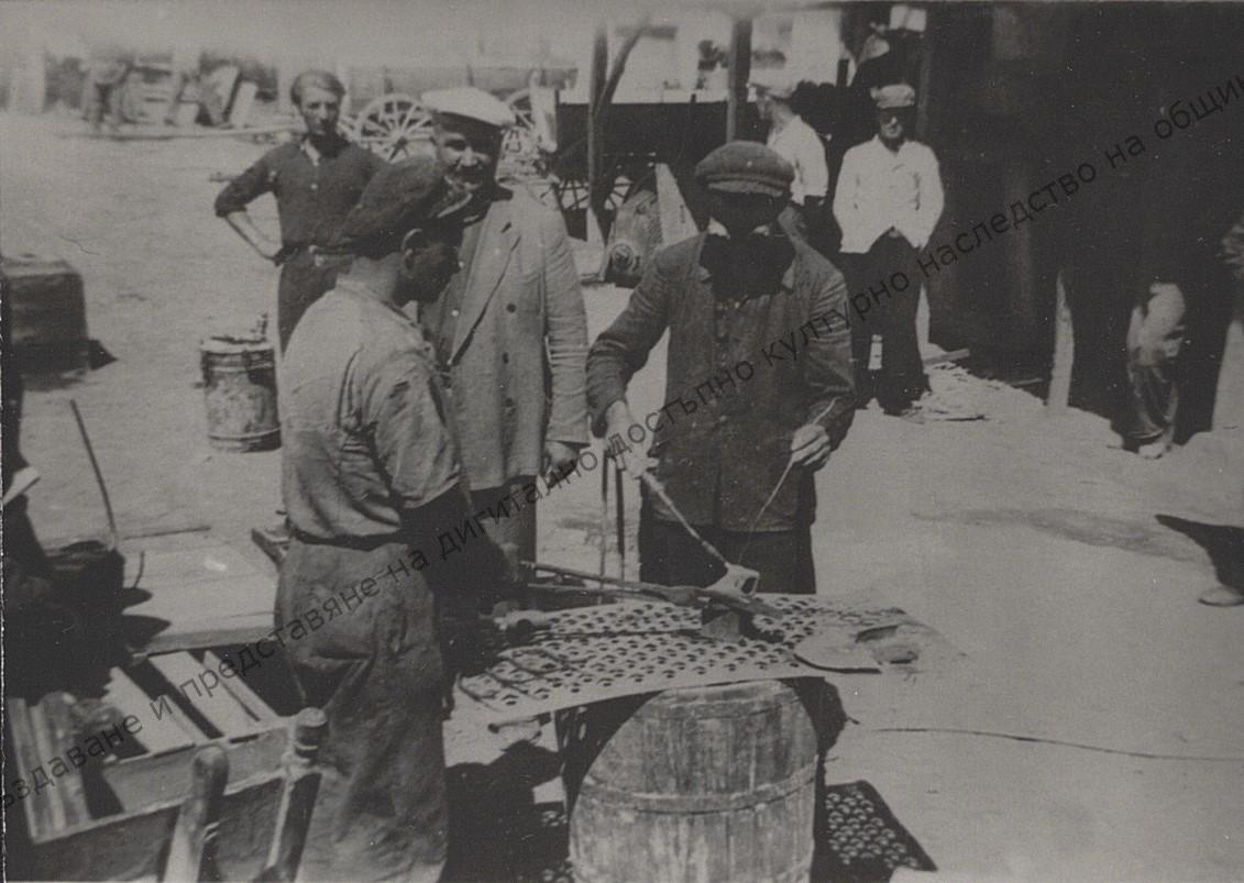 Labour and culture brigade in the village of D-r Stamboliyski. Workers from the town helping villagers, 1945