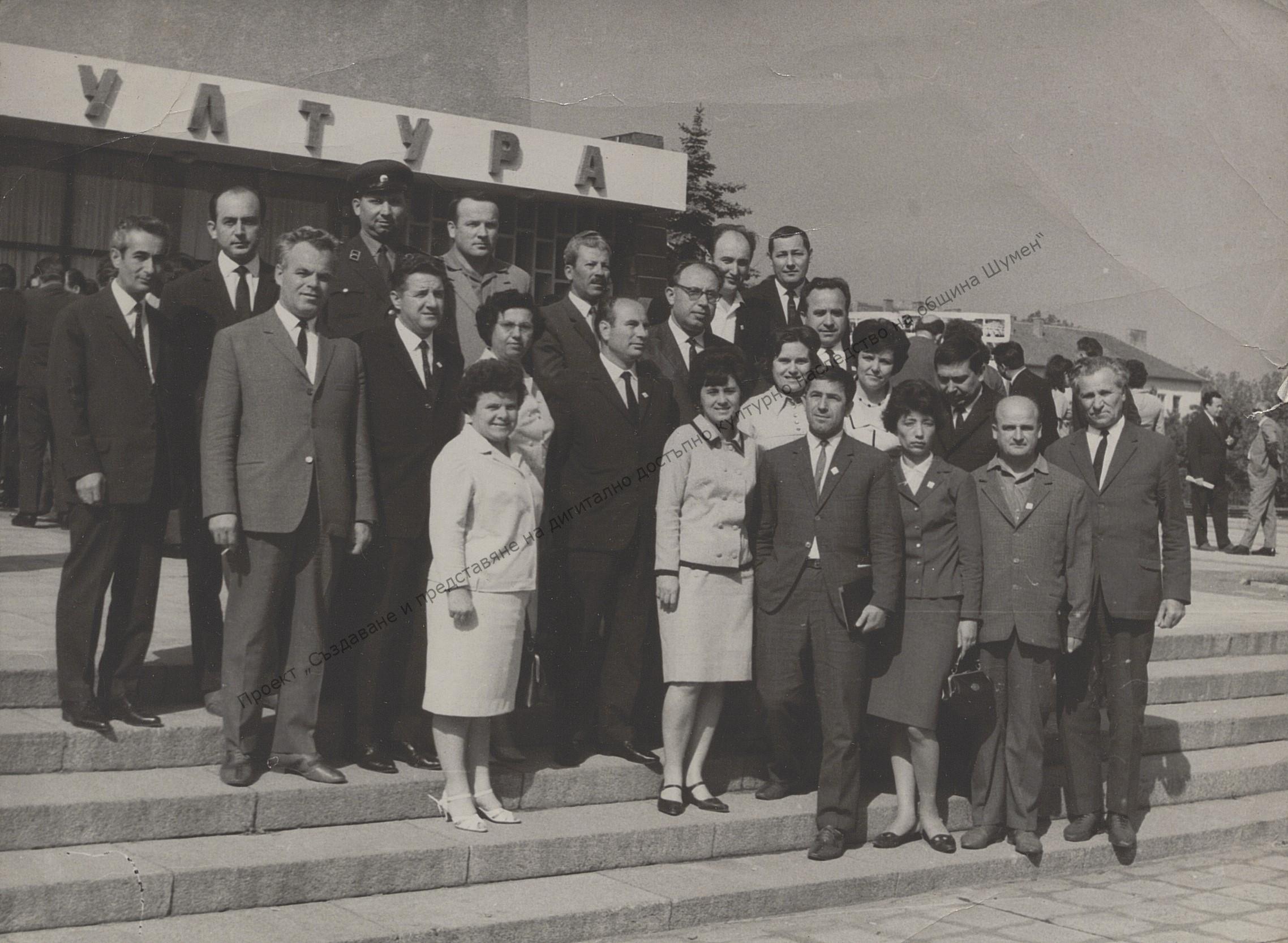 Shumen District delegates of the 1st Culture Congress. Amongst them are: V. Vachkov, Penyo Ivanov, Y. Yordanov, Zorka Koseva, V. Boycheva, Nela Dancheva and others