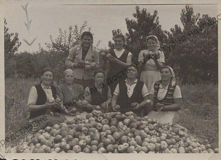 Picking apples in the orchard in Divdyadovo, 1950-55