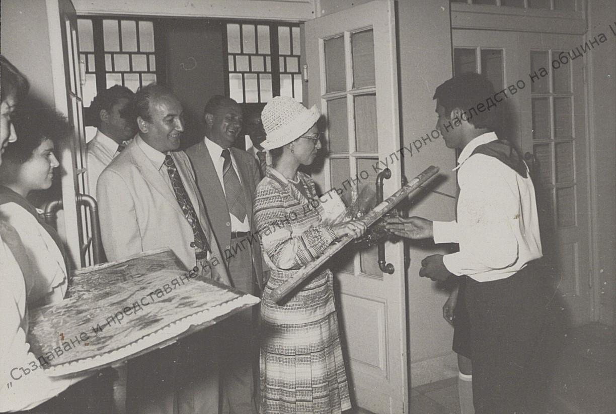 Welcoming Lyudmila Zhivkova in the District Art Gallery with the exhibition of the Preslav gold treasure, June, 1979