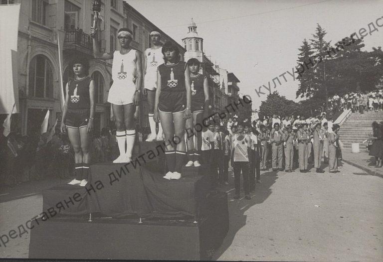 Solemn welcoming of the Olympic flame for the Moscow Olympic Games, Shumen, July 1980
