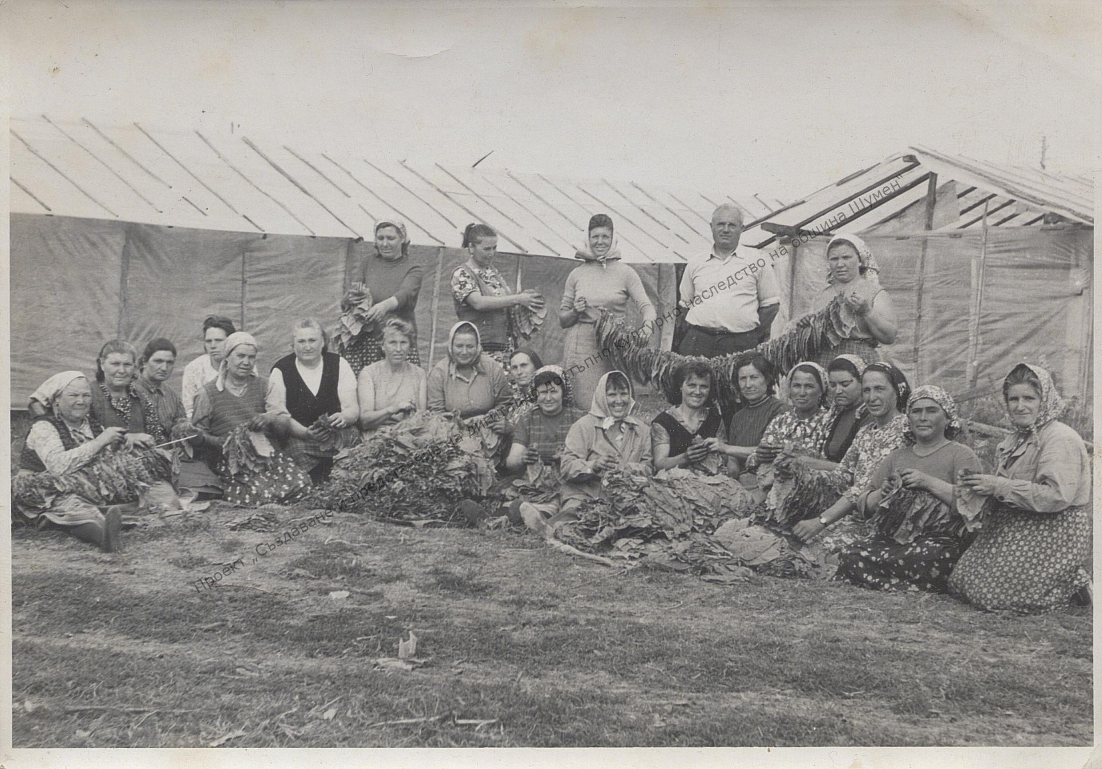 Tobacco brigade in the cooperative farm in the village of Kamenyak, 1968