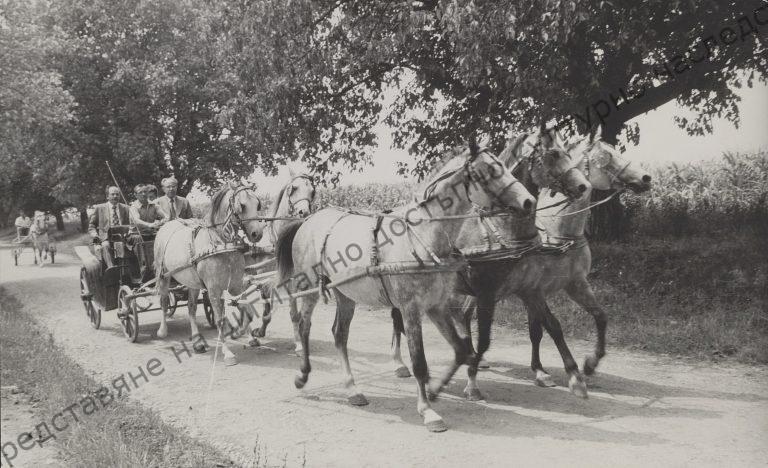 Vasil Vachkov – former first secretary of the District Committee of the Bulgarian Communist Party and Pencho Kubadinski – former member of the Politburo of the Bulgarian Communist Party on a walk in “V. Kolarov” State Farm. Subsidiary Research Collection