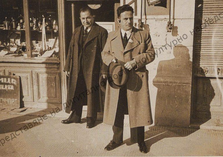 Dimitar and Boris Targovski brothers in front of their own bookstore in the centre of Shumen. “Mlada gvardia” cinema was built in its place