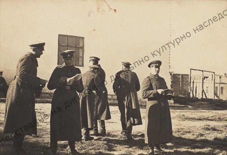 Dobri Panchev from the village of Voyvoda, together with other soldiers, receiving a military bulletin, 3rd of December 1939
