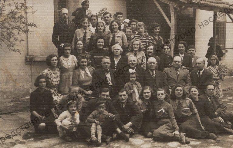 Честването на 1 май 1943 г. във фабриката на Павел Байнов. Самият П. Байнов е в средата зад момиченцето. Снимката е съхранявана в дома на Миленко Байнов – син на Павел Байнов