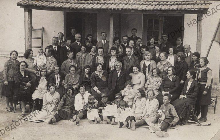 Честването на 1 май 1931 г. във фабриката на Павел Байнов. П. Байнов е в средата, а от дясната му страна, в черна рокля, е неговата съпруга – Димка Байнова. Снимката е съхранявана в дома на Миленко Байнов – син на Павел Байнов