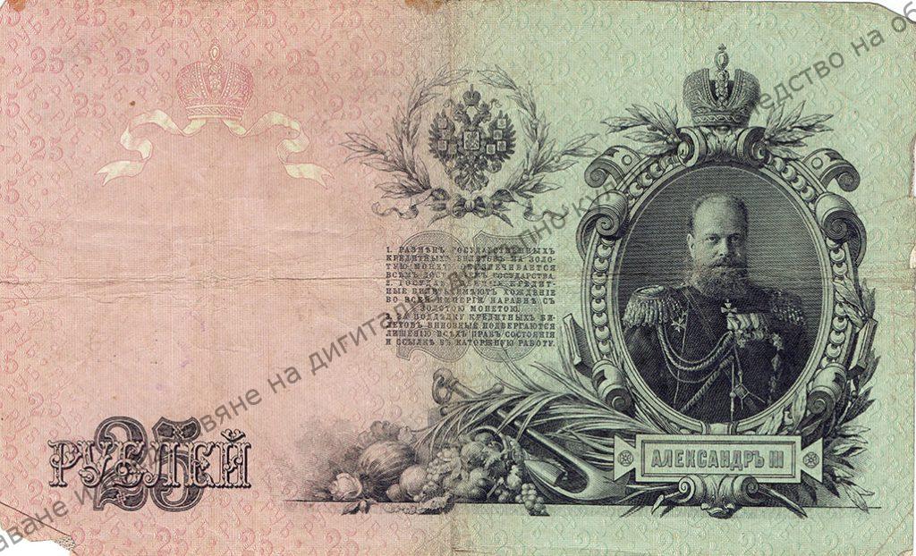 Старинна руска банкнота от 25 рубли, емисия 1909 г.