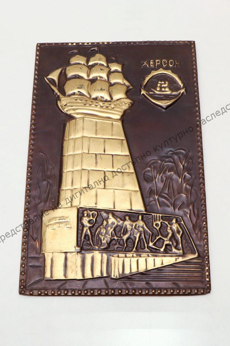 Металопластика „Херсон“. Изобразен е паметникът на основателите на града