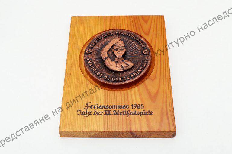 От бронз, дървена подложка, надписи на немски език
