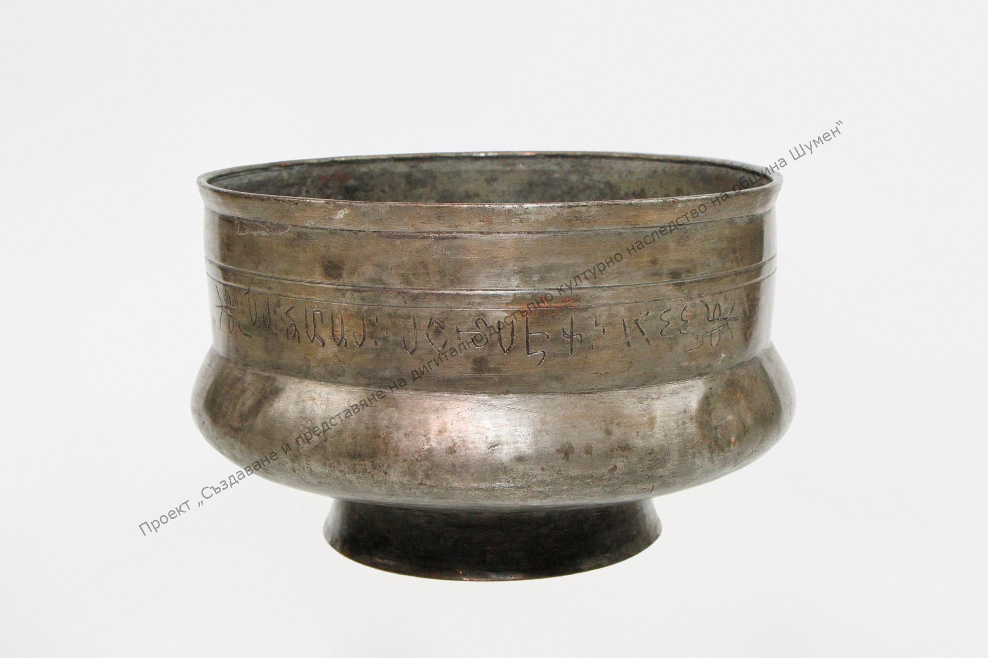 Copper, tinned. No decoration, inscription in Old-Bulgarian (or Greek) and year