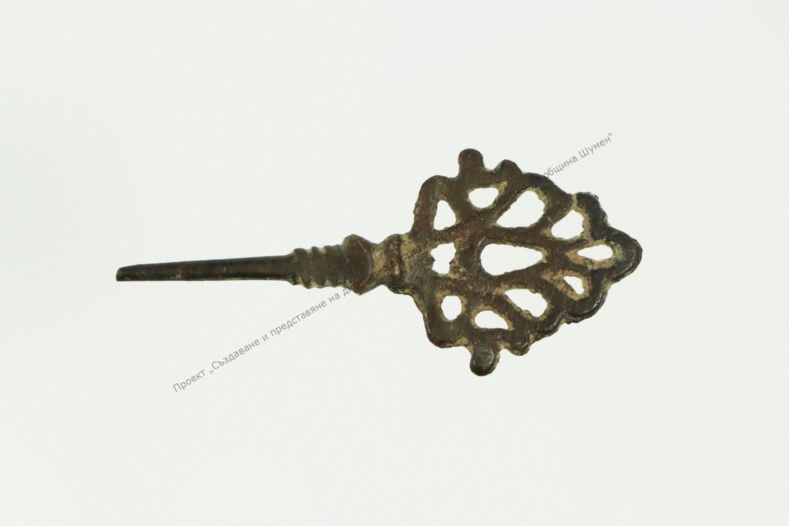 Метална, елипсовидна форма. Изпъкнала украса