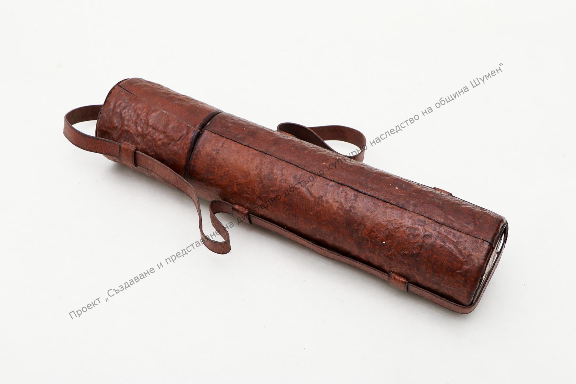 For documents. Of leather, cylindrical shape. Hand-engraved. Worked by Milko Minkov – master of arts and crafts