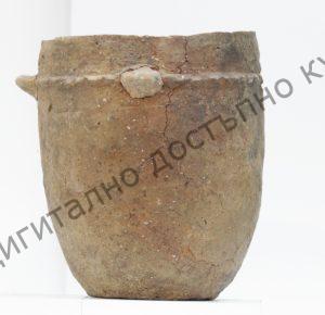 Урна, съд от глина, конусовидна форма, около устието има шнуровидна украса със симетрично разположени четири езичета. Открита при разкопки в с. Ловец, могила I, гроб 1 през 2005 г.