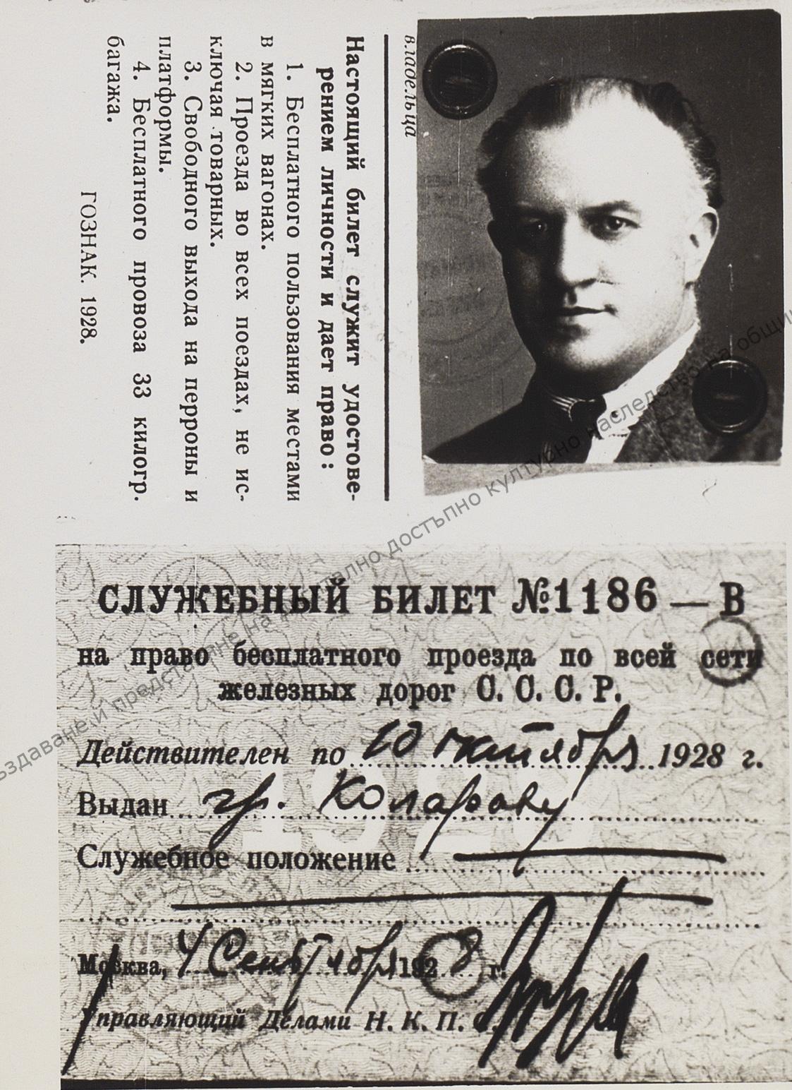 Free railway travel card. 4th of September 1928