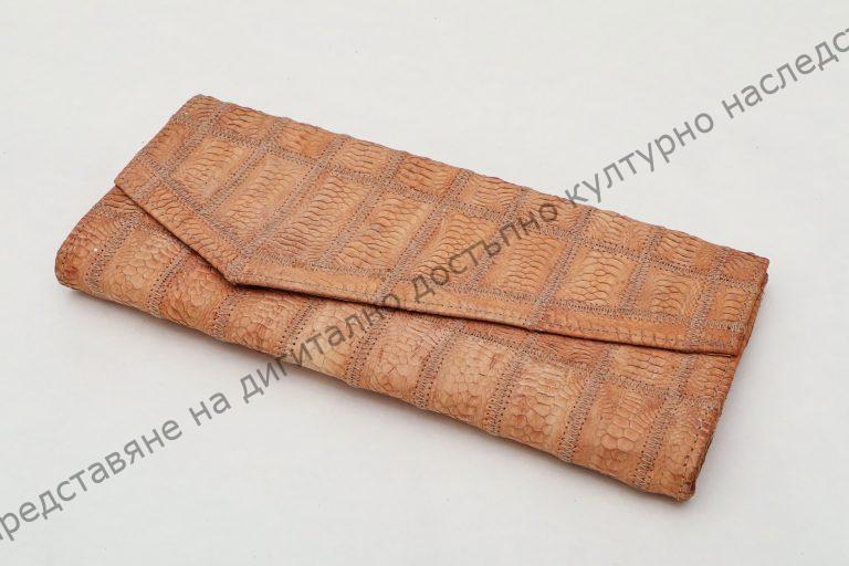 Дамска. От пилешка кожа. Изработена от СП „Коопром“ – Шумен. Участие в окръжната изложба на ТНТМ, 1983 г.