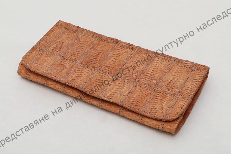 Дамска. От пилешка кожа. Изработена от СП „Коопром“ – Шумен. Участие в окръжната изложба на ТНТМ, 1983 г.