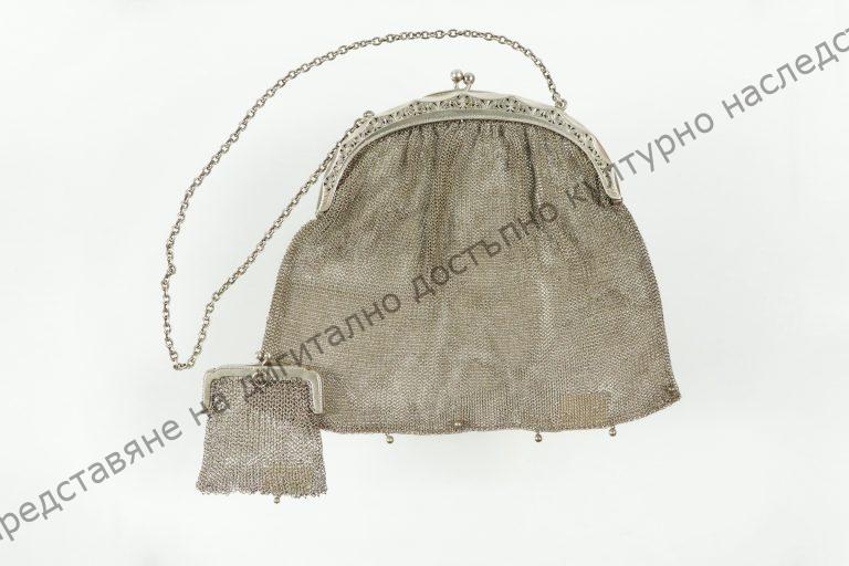 Of silver wire, chain mail knit, with purse. Late 19th century