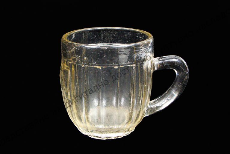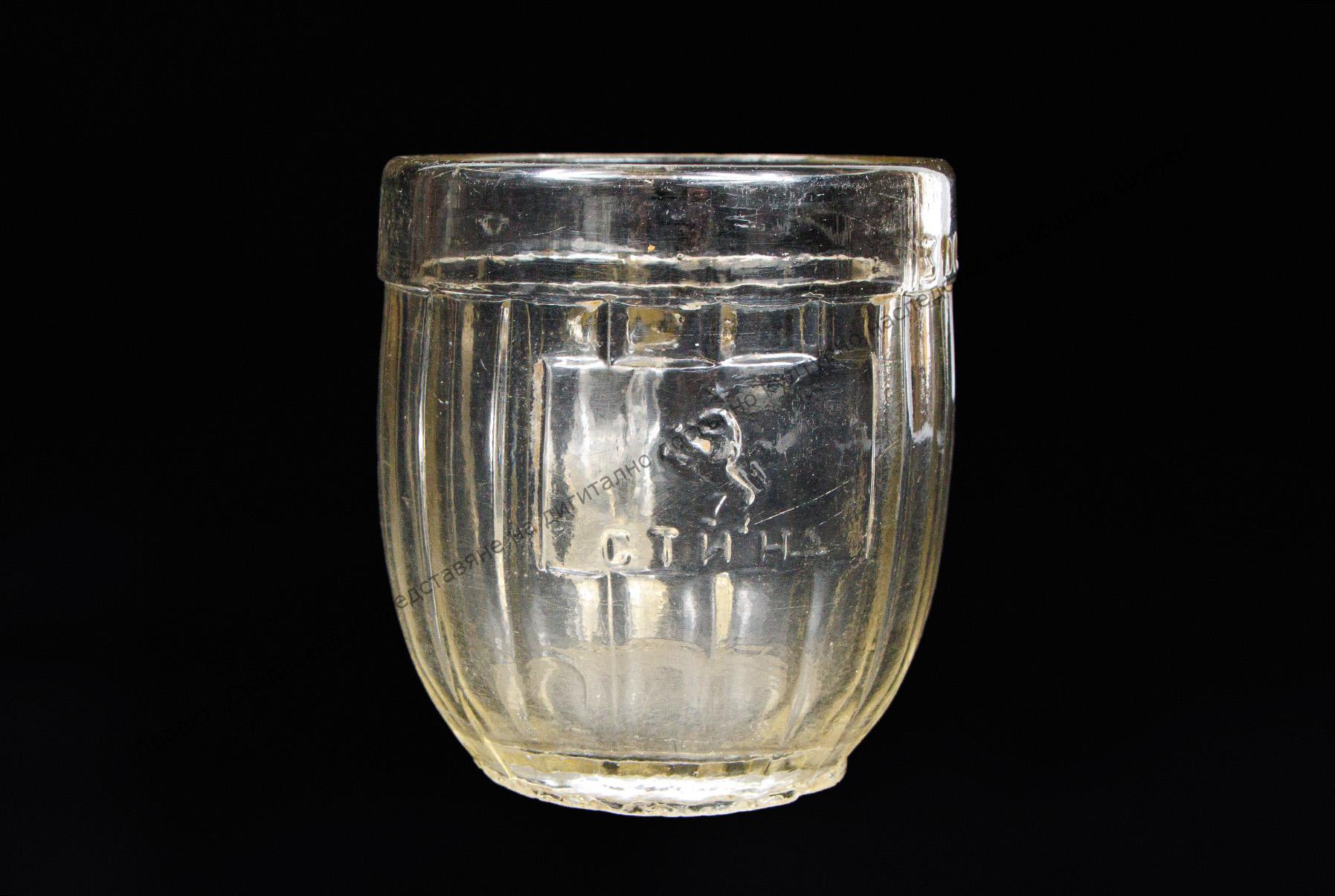 Изработена от прозрачно стъкло, с цилиндрична форма и с вдлъбната украса