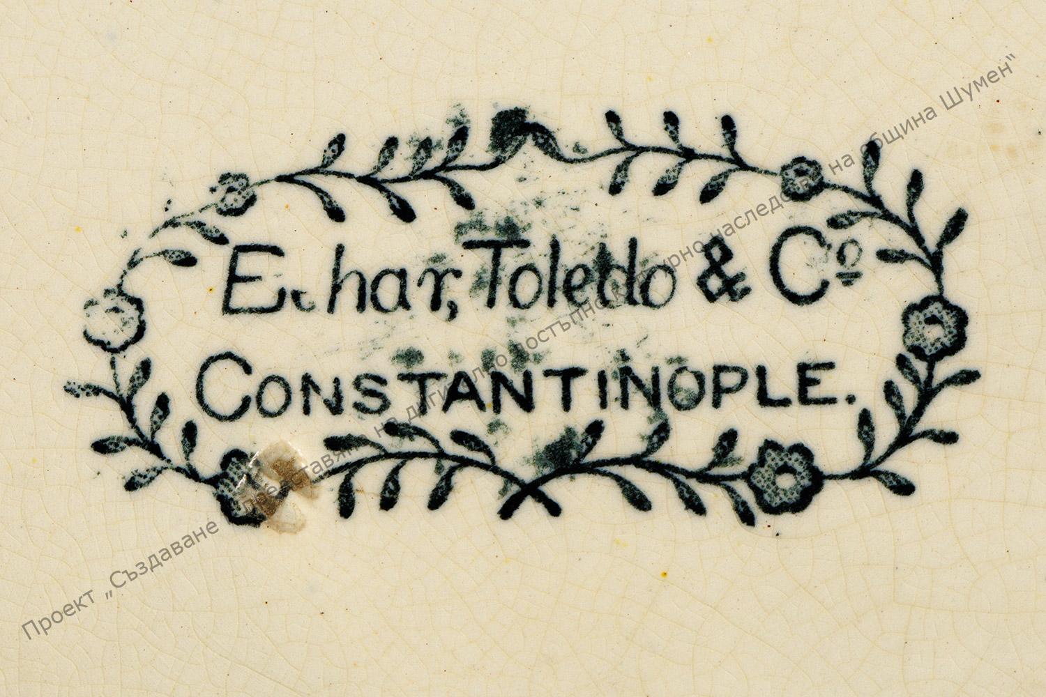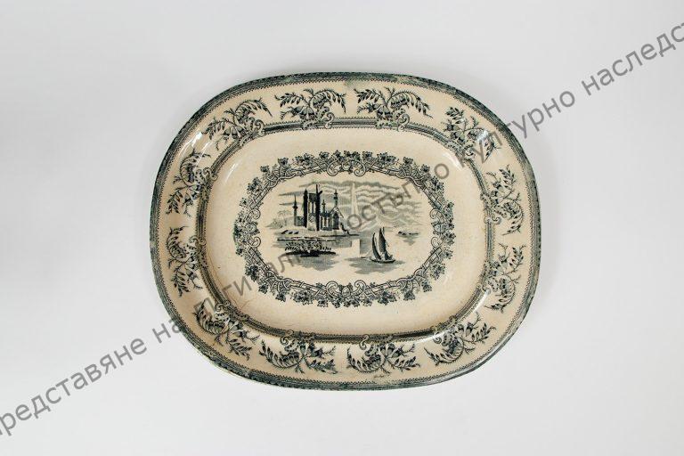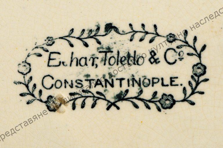 От кремав фаянс. На обратната страна печат с надпис: „Constantinople“