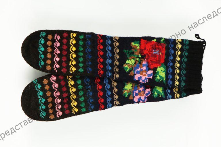 Мъжки. Домашно изплетени на пет куки. Украсени с ивици от силно стилизирани растителни орнаменти