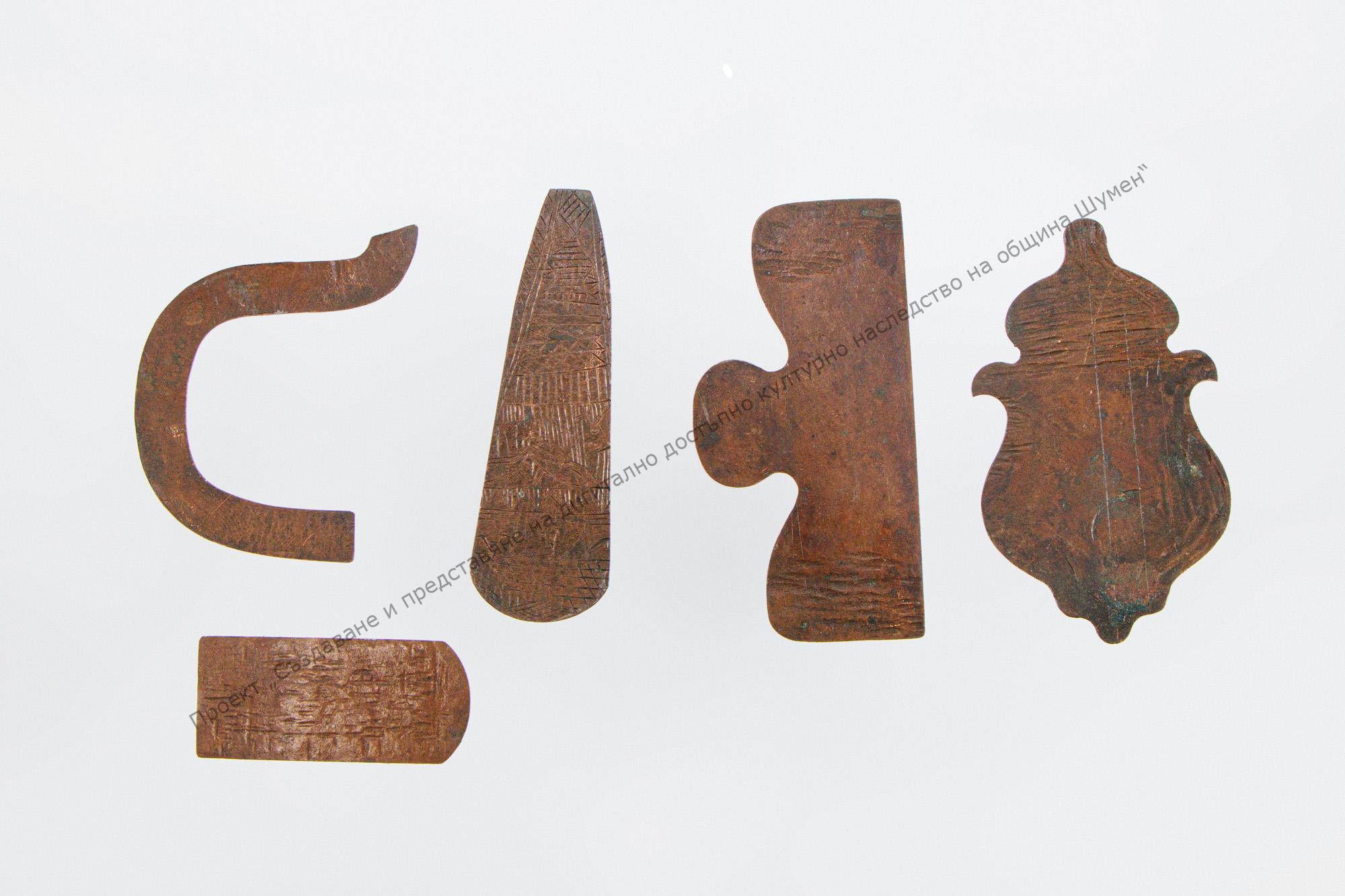 Part of goldsmith’s inventory – belonged to Panayot Kuyudzhi – goldsmith from Shumen. Of copper, various geometric shapes, used for applying the contours of engraving decoration