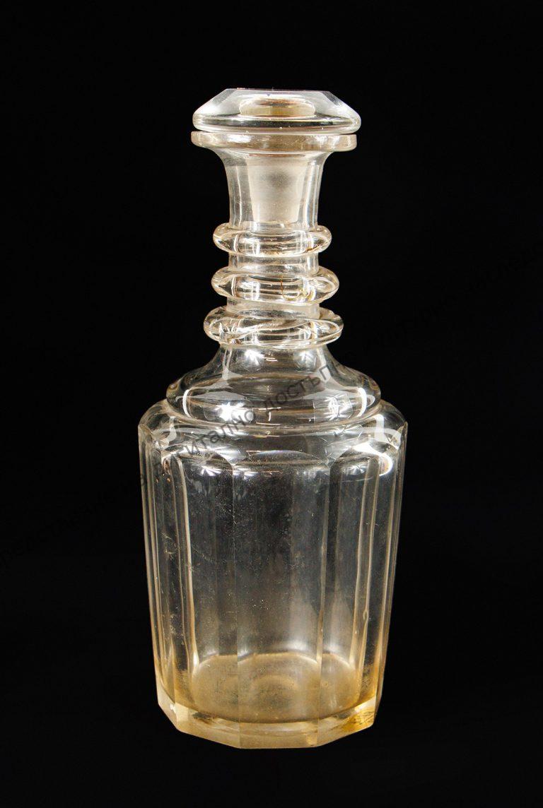 Тип гарафа. Изработено от дебело прозрачно стъкло.