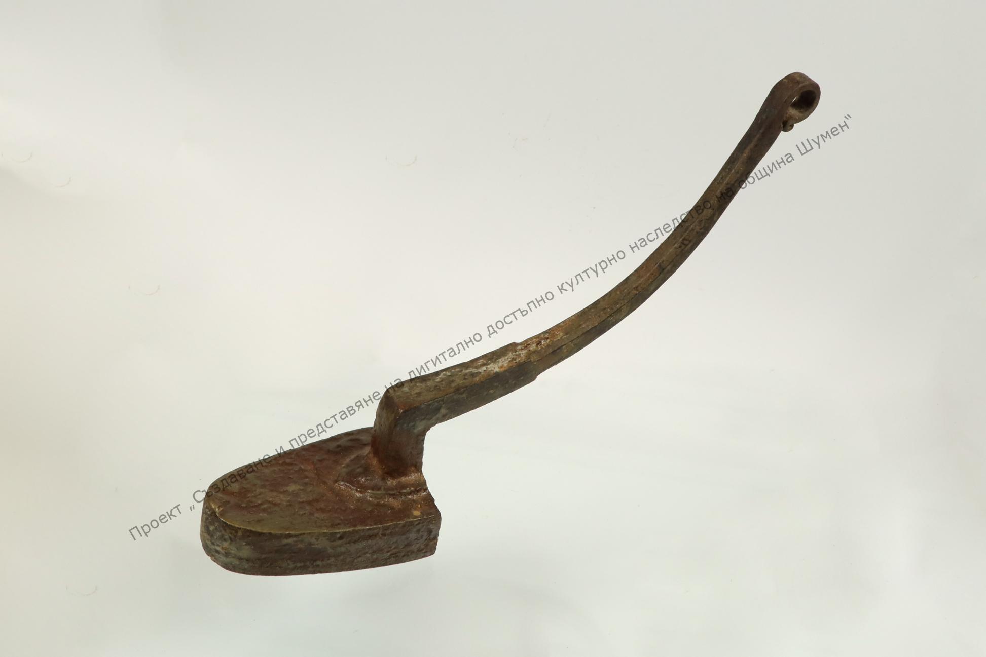 Of iron, triangular shape and long handle. Belonged to Atanas Vasilev – frieze weaver from the village of Veselinovo, used until the 30s of the 20th century