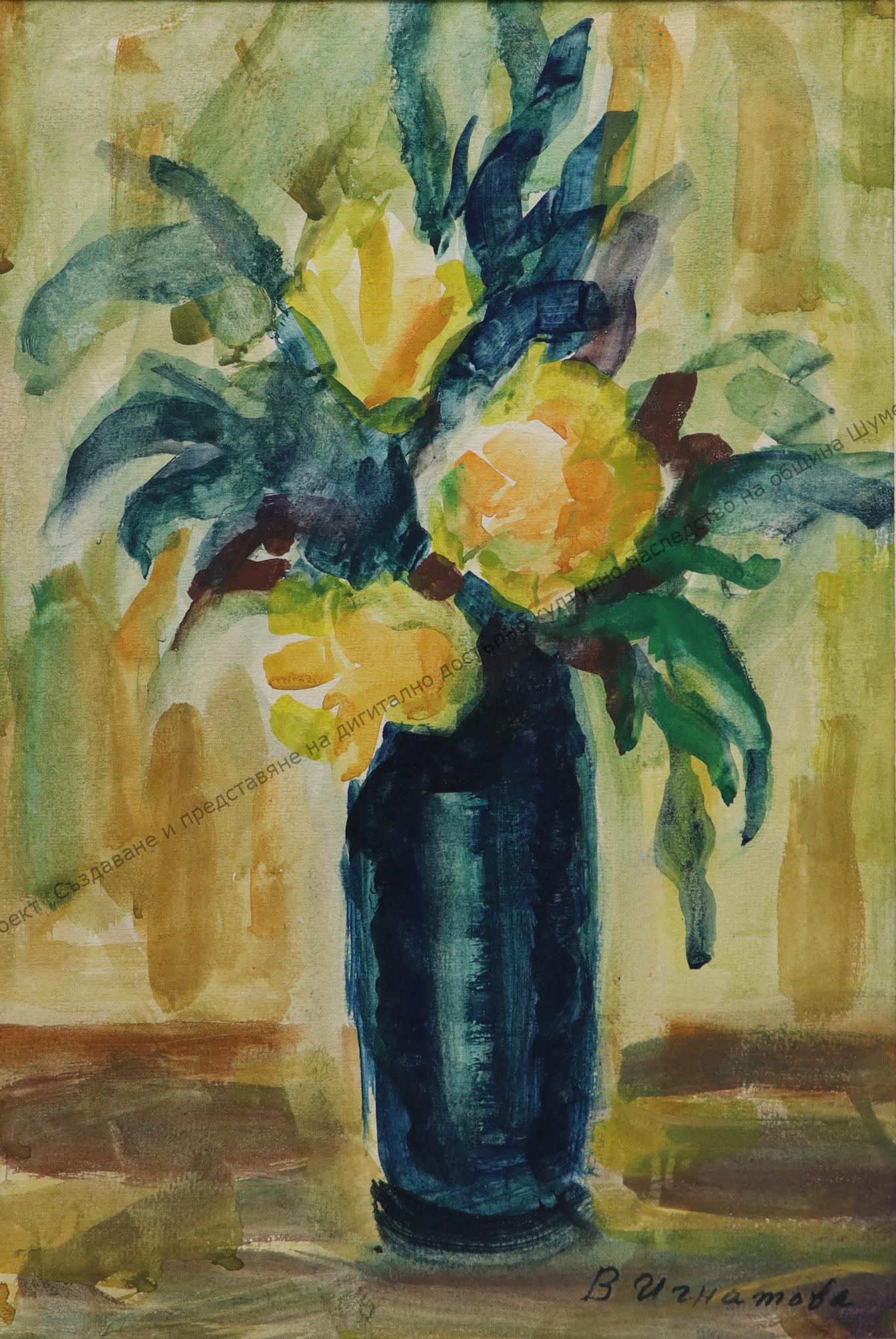Велислава Игнатова, „Цветя в синя ваза“, ок. 1960 г.
