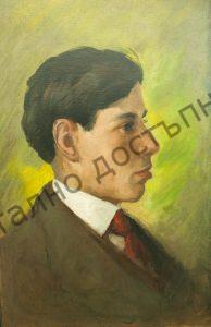 Профил на млад мъж с червена вратовръзка, профил – дясно