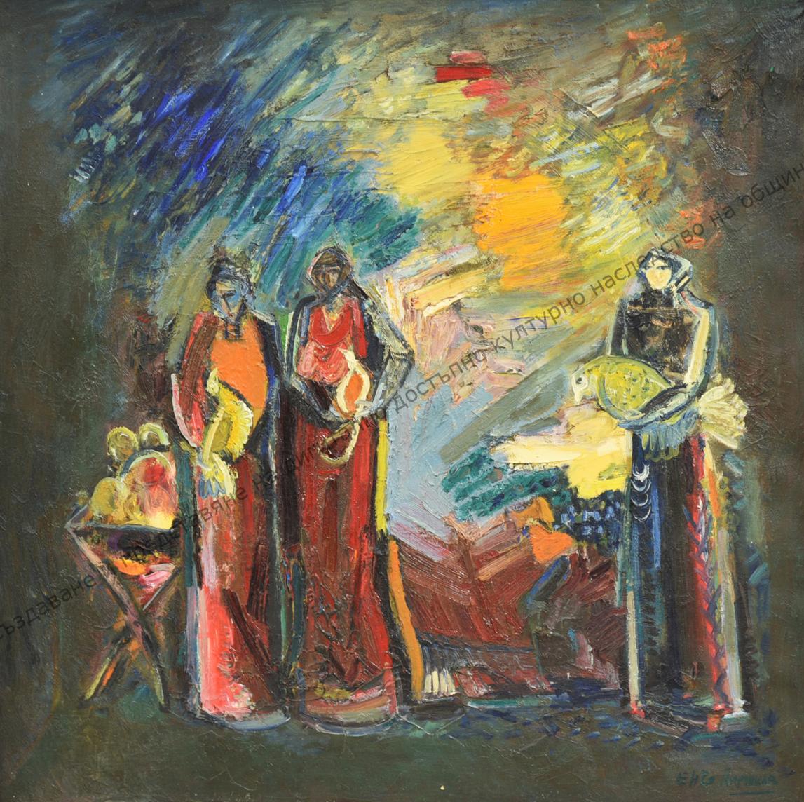 Pironkov, Encho Stoev Pironkov (1932). Born on November 9, 1932 in the village of Rozovets, Plovdiv region. No specialized art education. Since the beginning of the 1960s, he has been part of the Plovdiv group of artists. With his participation in the First Youth Exhibition in 1961, he marked his permanent presence in the Bulgarian artistic life. He performs in the field of painting, graphics, wall-monumental arts. His works are owned by private collections and museum collections from the country and abroad.
