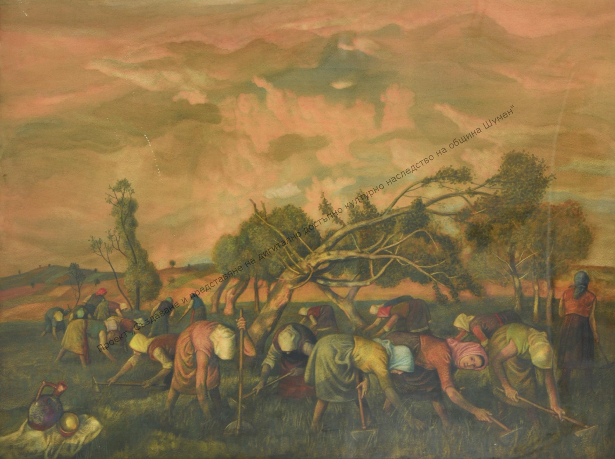 Stoilov, Vasil Antonov (1904-1990). Born on February 29, 1904 in the village of Poduene (today a district of Sofia) in a large family. In 1922 he was admitted to the Art Academy in the painting class of Prof. Tseno Todorov. He graduated from the Academy with honors in 1927. In the same year, he participated in the First OHI with 4 paintings. From 1929 to 1932 he studied, lived and worked in Paris, supporting himself from his paintings. participated in the salon of French artists, and organized a solo exhibition. After returning to Bulgaria, he actively participated in artistic life. He died in 1990 in Sofia. Since 1958 he has been a professor of drawing. He works in all genres of painting – portraits, figurative compositions, domestic scenes, landscapes.