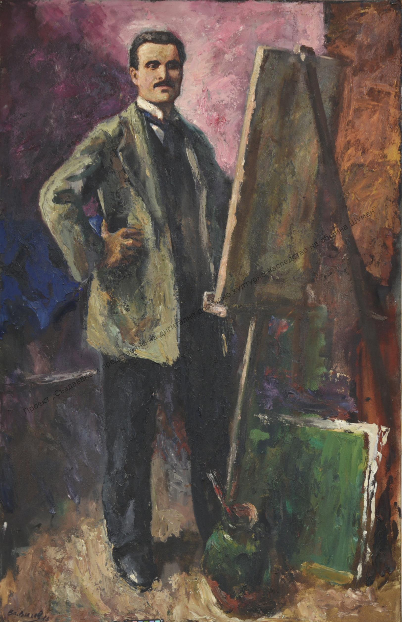 VICHEV, Vladimir Dimitrov Vichev (17.XI.1917-1979). Born in Shumen in a family of teachers. His father Dimitar Vichev is an artist. After graduating from the Men’s High School in Shumen, he was a student at the Academy of Arts in Budapest (1936-1942). In 1942, he was an intern at the Third Boys’ High School in Sofia. Participated in the Patriotic War. From 1946 to 1955, he worked in the community center “Dobri Voynikov”, where he made an art collection, which became the basis of the fund of the Art Gallery in Shumen. Bulgarian history, our revivalists and revolutionaries inspire his work. Works painting. He travels a lot in the country and abroad. Participates in all exhibitions and competitions. He won the Sofia award five times. Member of the SBH since 1955, secretary of the Group of Shumen artists. Awarded the Order of “Cyril and Methodius” – Second degree.