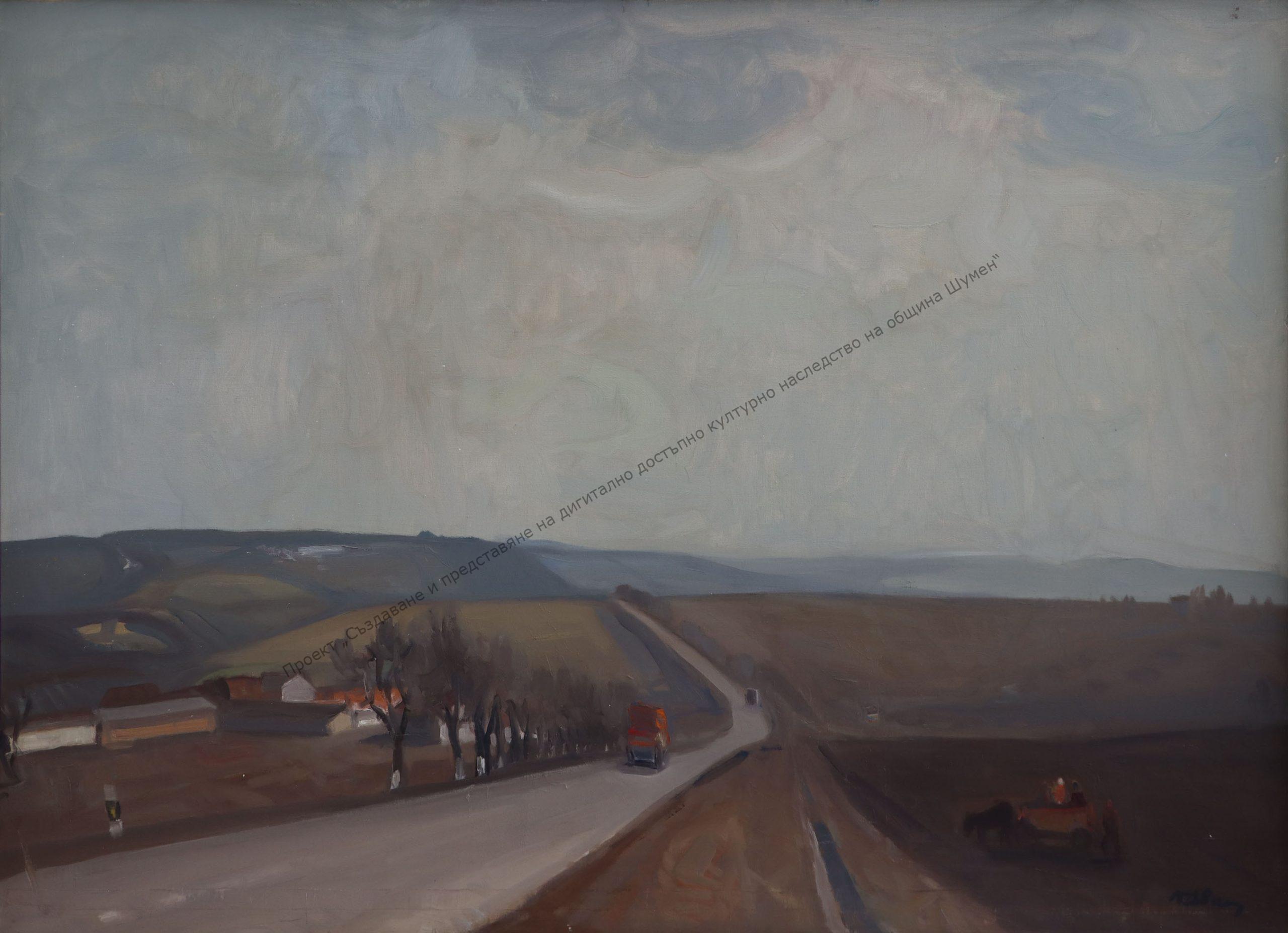 Abadjiev, Petko Stefanov. Born on February 28, 1913, Karlovo, died in 2004. He created many works, painted in soft silver-grey tones, with a marked sense of space-air environment and restraint. Graduated (1942) Painting at the Art Academy, Sofia, under Prof. Nikola Ganushev. In the first years of his work, he painted landscapes with scenes from Karlovo, some of them under the influence of Nikola Tanev, with whom he was friends.
