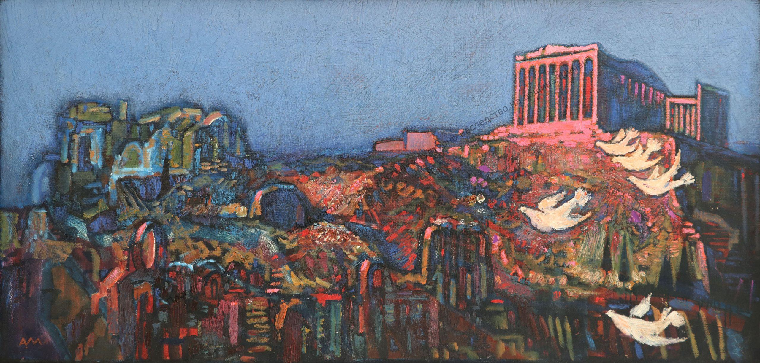 Angel Metodiev (1921 – 1984), “Doves over the Acropolis”, ca. 1977