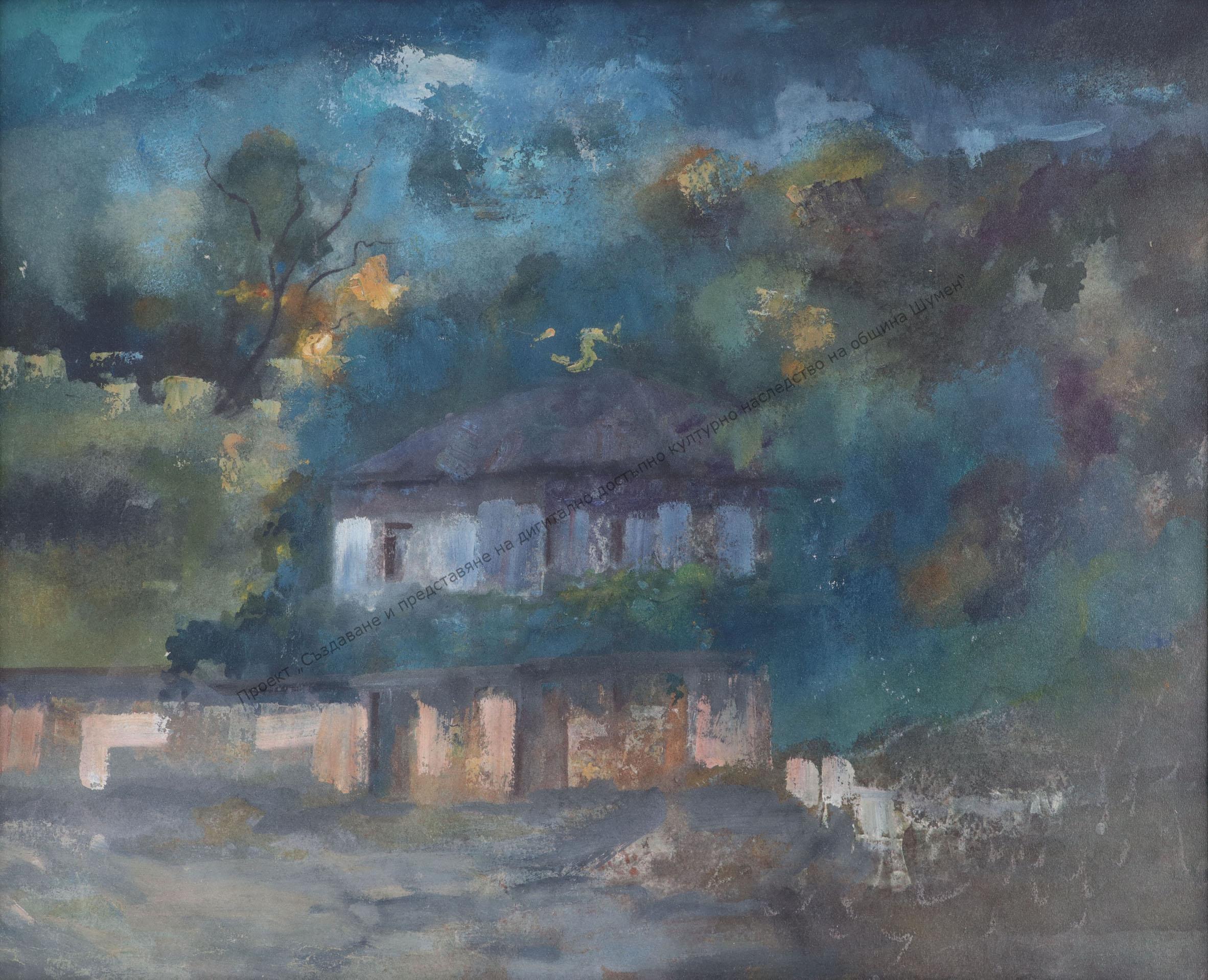 NEDEV, Zdravko Nedev Gerov (6.II.1917-1981). Born in Shumen. He studied at the Shumen Men’s High School, later at the Art Academy. In 1944, he held a solo exhibition in which he showed 42 watercolor landscapes. He works as a scenographer in the theaters in Pleven, Dobrich, Shumen, in the Musical Theater “St. Makedonski”. Since 1963, he has been an editor at HG-Shumen. Member of the Group of Shumen artists since its creation. He works mainly in painting. Participates in regional and national exhibitions. His works can be found in the NHG, abroad – Russia, Hungary, India.