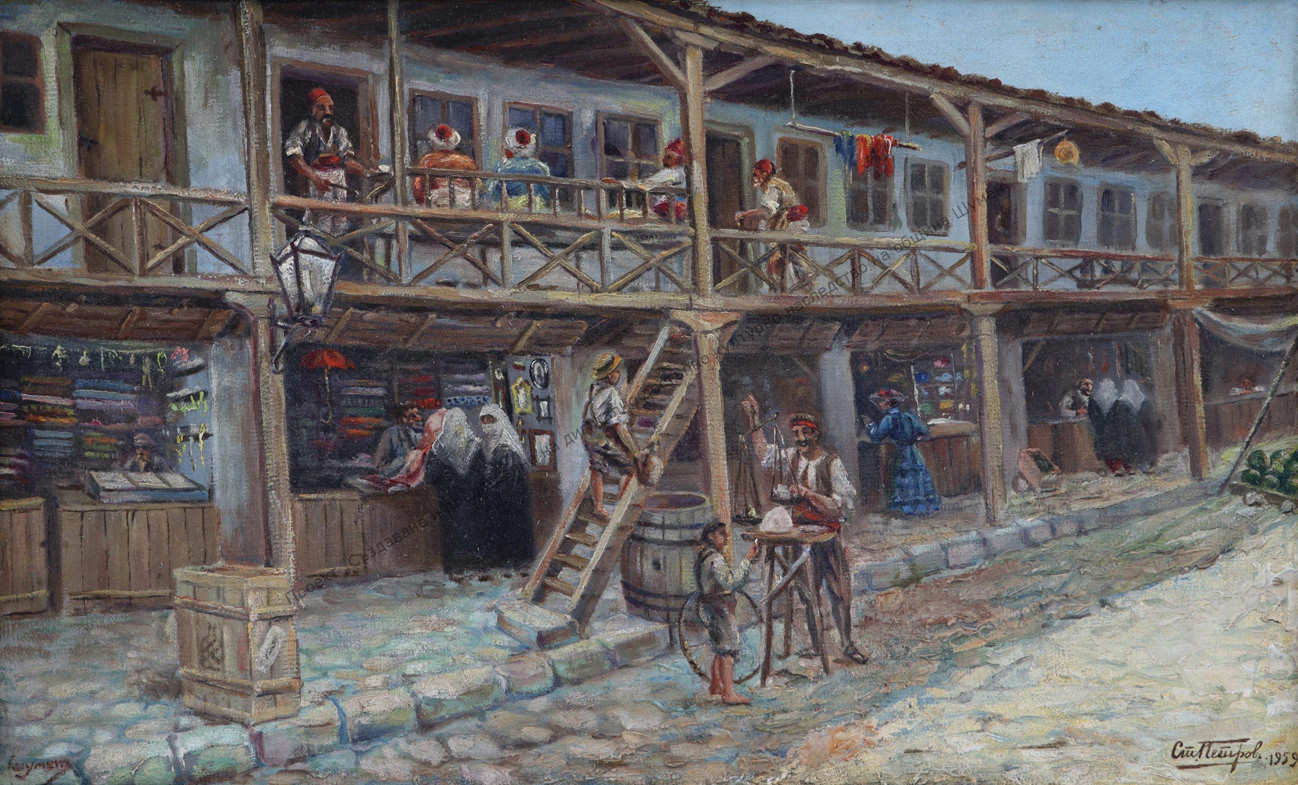 PETROV, Stefan Stoyanov Petrov (22.X.1891-1991). Born in Shumen in the family of a military man. He studied at the Rousse High School. In 1918, he graduated from the Sofia Art and Industrial School under Stefan Ivanov, Ivan Angelov, Hristo Berberov, Anton Mitov, and Marin Vasilev. He works in Sofia – in the State Printing House and in the National Theater. He returned to Shumen – taught, designed sets for operettas, devoted himself to painting. He held solo exhibitions in 1942, 1966, 1968, 1974, 1986 and 1991 – a jubilee exhibition on the occasion of his 100th anniversary.