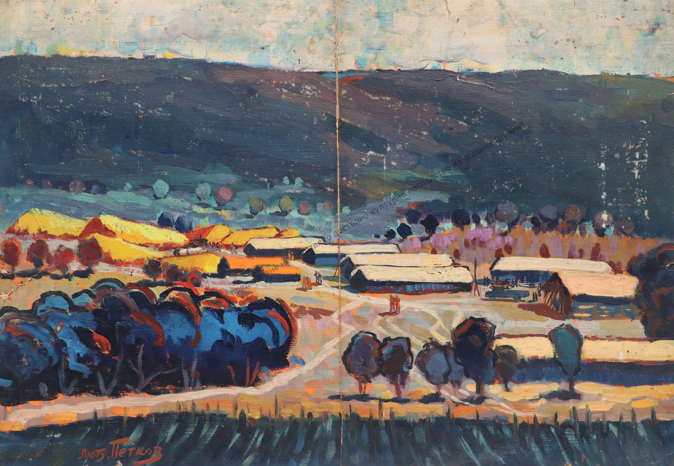 PETKOV, Lyubomir (Lyuben) Kalev Petkov – (30.XI.1915-1997). Born in Shumen. He graduated from the Art Academy (1937-1940) under Prof. N. Kozhuharov. Participated in the Patriotic War. Since 1946, he has been an artist at the “V. Drumev” Drama Theater – Shumen. Member of the Group of Shumen artists. Honored figure of DOSO – member of the Shumen Aero Club. Holder of the Order “Cyril and Methodius” – Third degree.