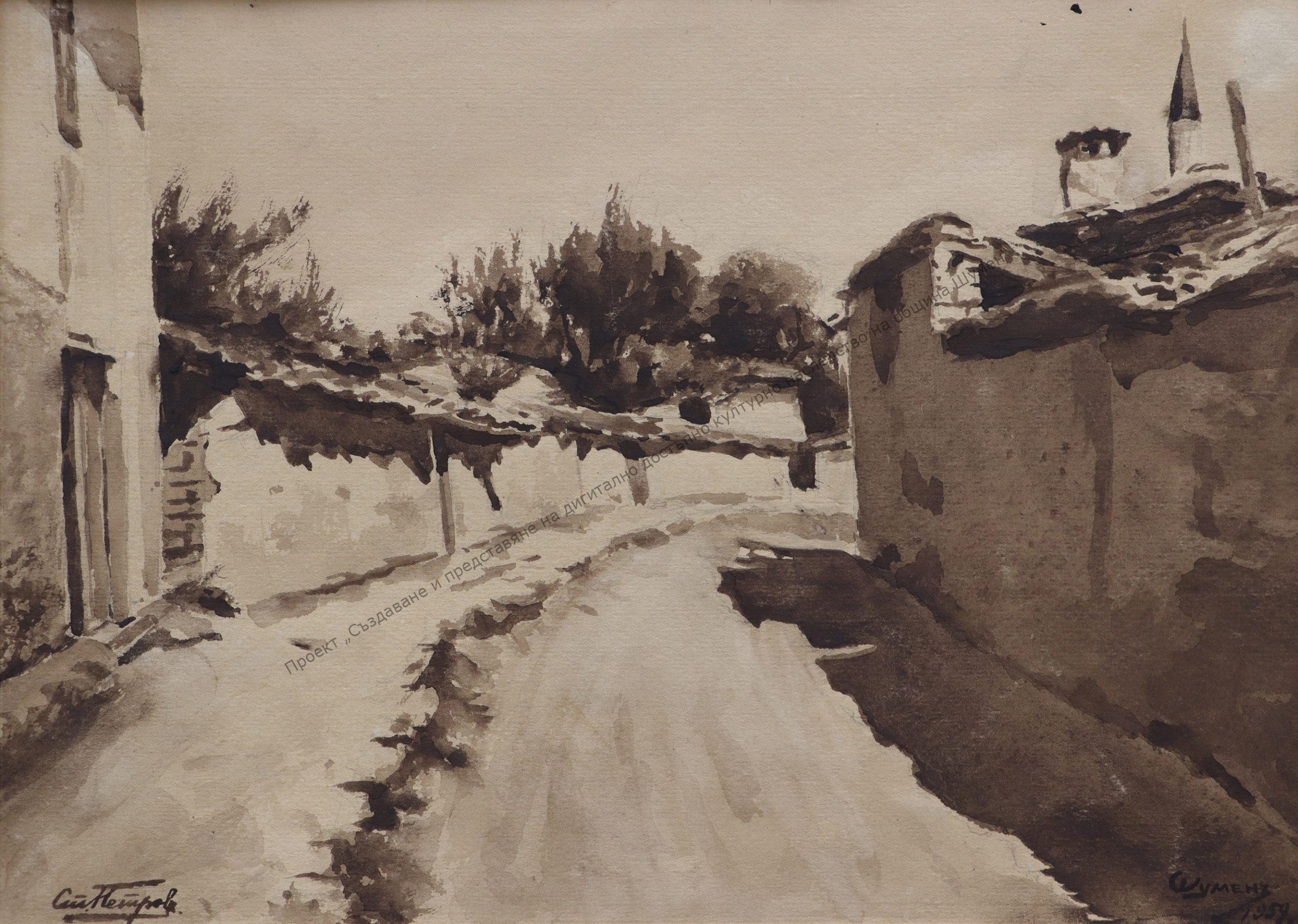 PETROV, Stefan Stoyanov Petrov (22X1891-1991). Born into a military family. He studied at the Rousse High School. In 1918, he graduated from the Sofia Art and Industrial School under Stefan Ivanov, Ivan Angelov, Hristo Berberov, Anton Mitov, and Marin Vasilev. He works in Sofia – in the State Printing House and in the National Theater. He returned to Shumen – taught, designed sets for operettas, devoted himself to painting. He held solo exhibitions in 1942, 1966, 1968, 1974, 1986 and 1991 – a jubilee exhibition on the occasion of his 100th anniversary.