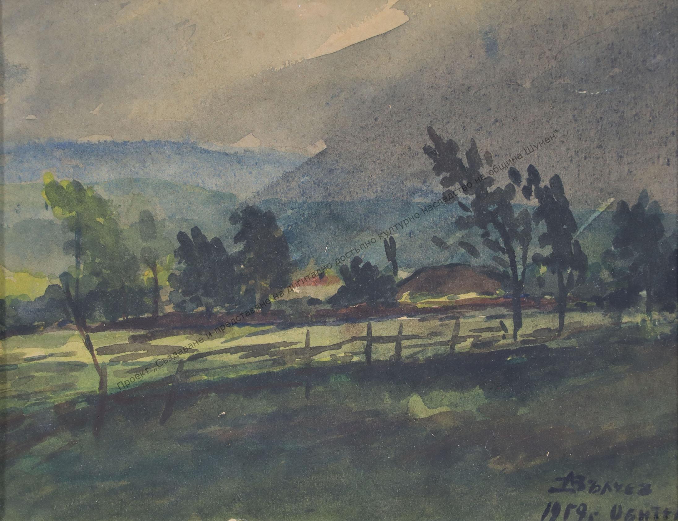 VALCHEV, Dimo Valchev Dimov (15.VIII.1923-1990) Born in the village of Mogila, Shumensko. In 1942 he graduated from the 1st “V. Drumev” men’s high school in Shumen, in the following year 1943 he graduated from the naval department of the School for Reserve Officers at the Naval School in Varna. He studied for two semesters at the Faculty of Law of the SU. Actively participates in the Group of Shumen artists. Theater master in the Turkish variety theater until 1961. Artist successively at OKS, ZTA “Madara”, TKZS-Divdyadovo. One of the founders of the children’s puppet theater at the “D. Voynikov” community center.