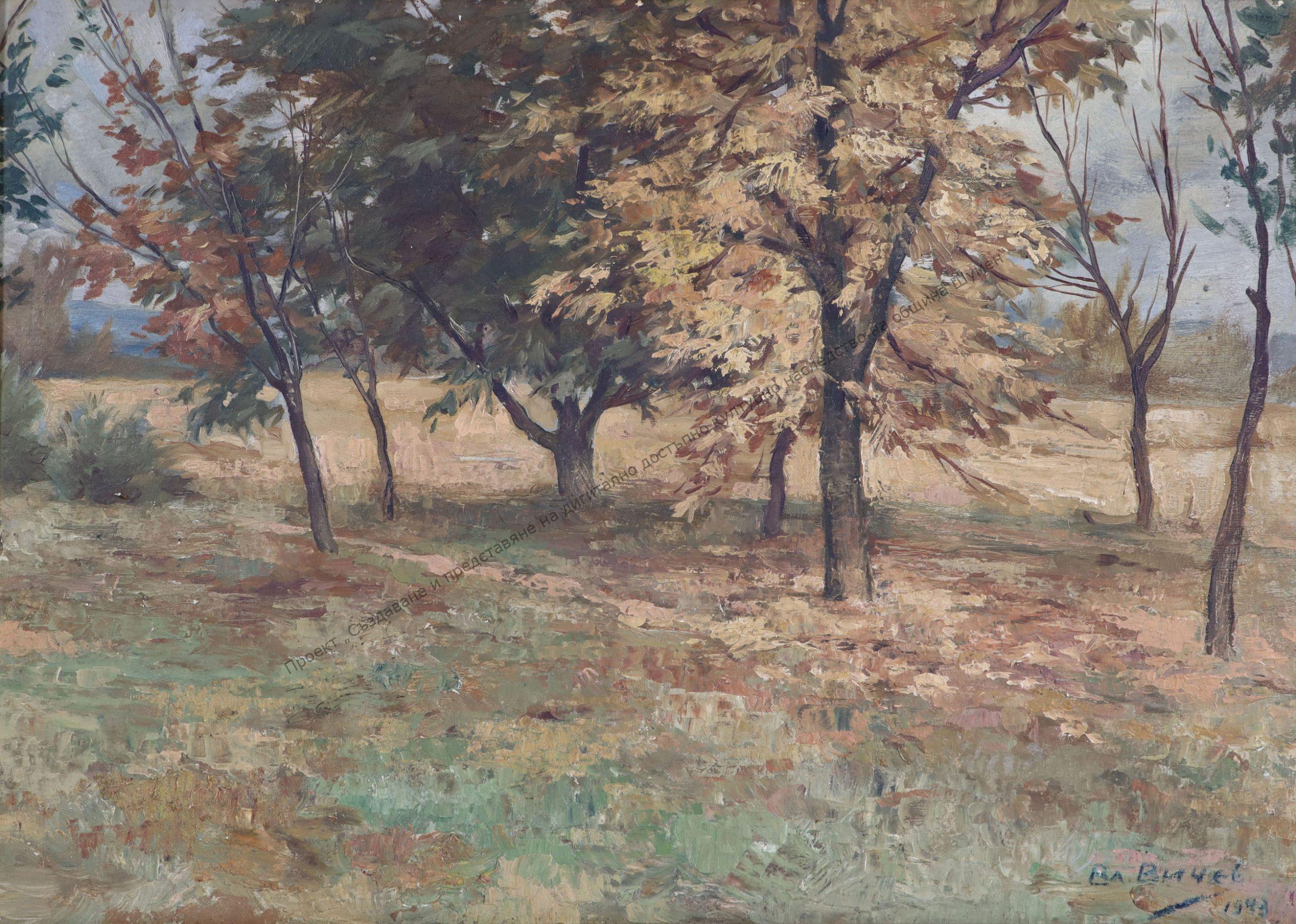 Sotirov, Stoyan Birov Born on 11.05.1903, village of Gradevo Blagoevgradsko – died on 18.01.1984. Sofia. In 1919 he entered the Drawing School in Sofia and continued his higher education at the Academy of Arts, where from 1924 to 1928 he studied painting with Prof. Dimitar Gyudzhenov and Prof. Stefan Ivanov. His fellow student is Dechko Uzunov. He works in the field of portraiture, figural composition, still life, graphics and posters.