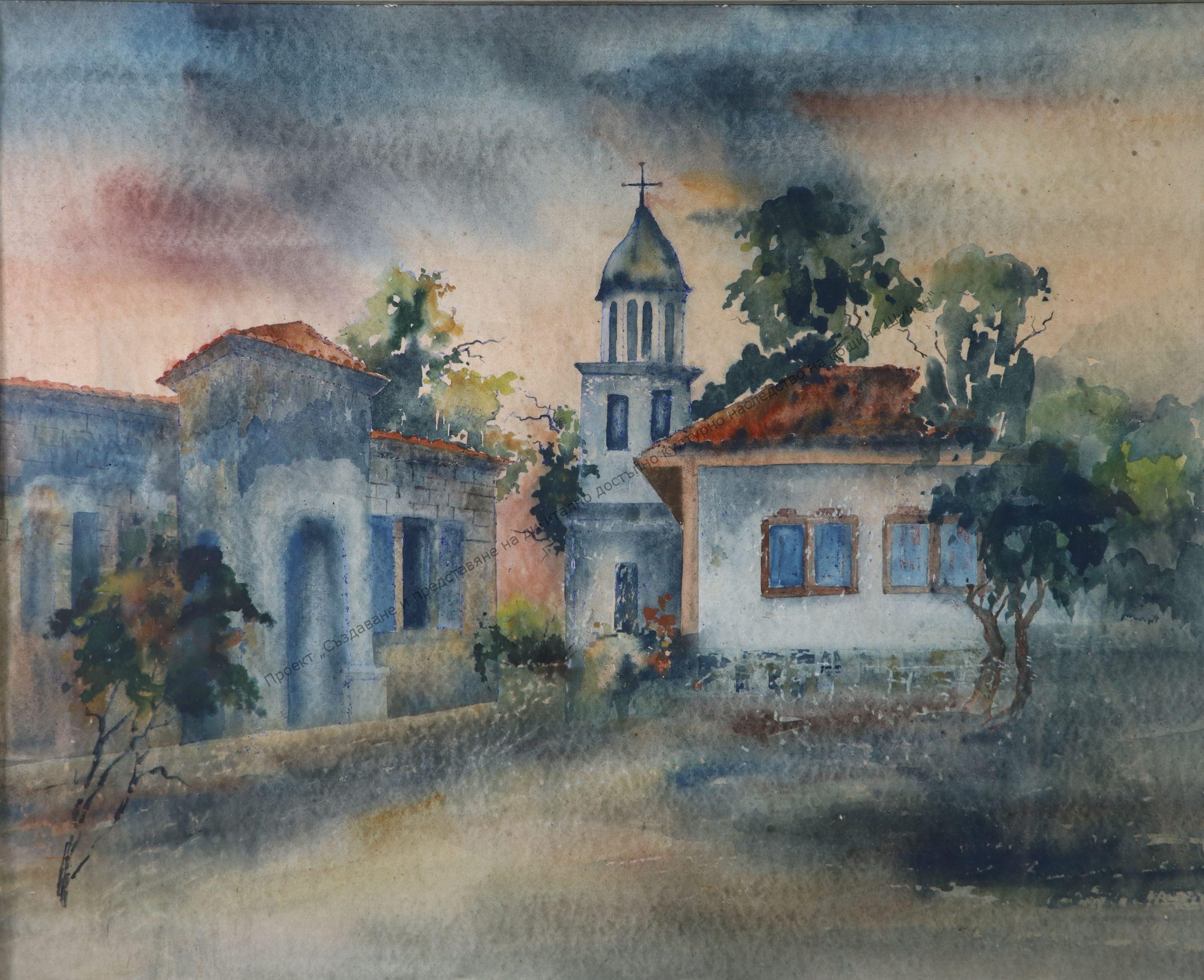NEDEV, Zdravko Nedev Gerov (6.II.1917- V.1981). Born in Shumen. He studied at the Shumen Men’s High School, later at the Art Academy. In 1944, he held a solo exhibition in which he showed 42 watercolor landscapes. He works as a scenographer in the theaters in Pleven, Dobrich, Shumen, in the Musical Theater “St. Makedonski”. Since 1963, he has been an editor at HG-Shumen. Member of the Group of Shumen artists since its creation. He works mainly in painting. Participates in regional and national exhibitions. His works can be found in the NHG, abroad – Russia, Hungary, India.