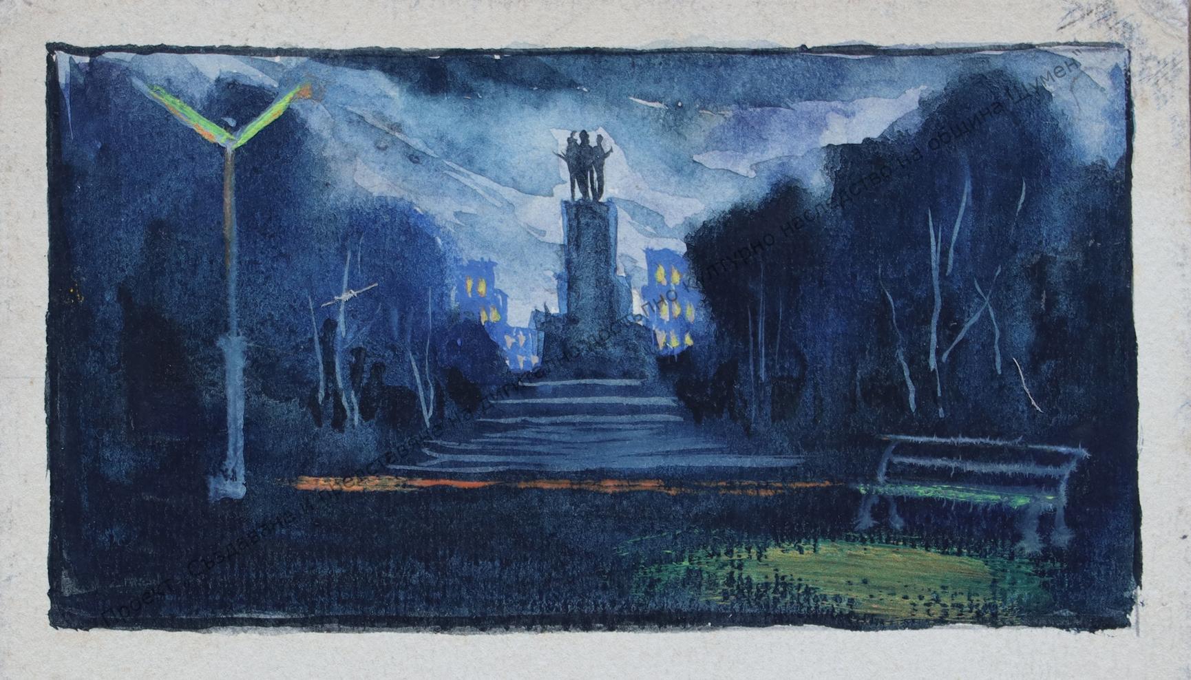 PETKOV, Lyubomir (Lyuben) Kalev Petkov (DYAD KAYU) -(30.XI.1915-1997). Born in Shumen. He graduated from the Art Academy (1937-1940) under Prof. N. Kozhuharov. Participated in the Patriotic War. Since 1946, he has been an artist at the “V. Drumev” Drama Theater – Shumen. Member of the Group of Shumen artists. Honored figure of DOSO – member of the Shumen Aero Club. Holder of the Order “Cyril and Methodius” – Third degree.
