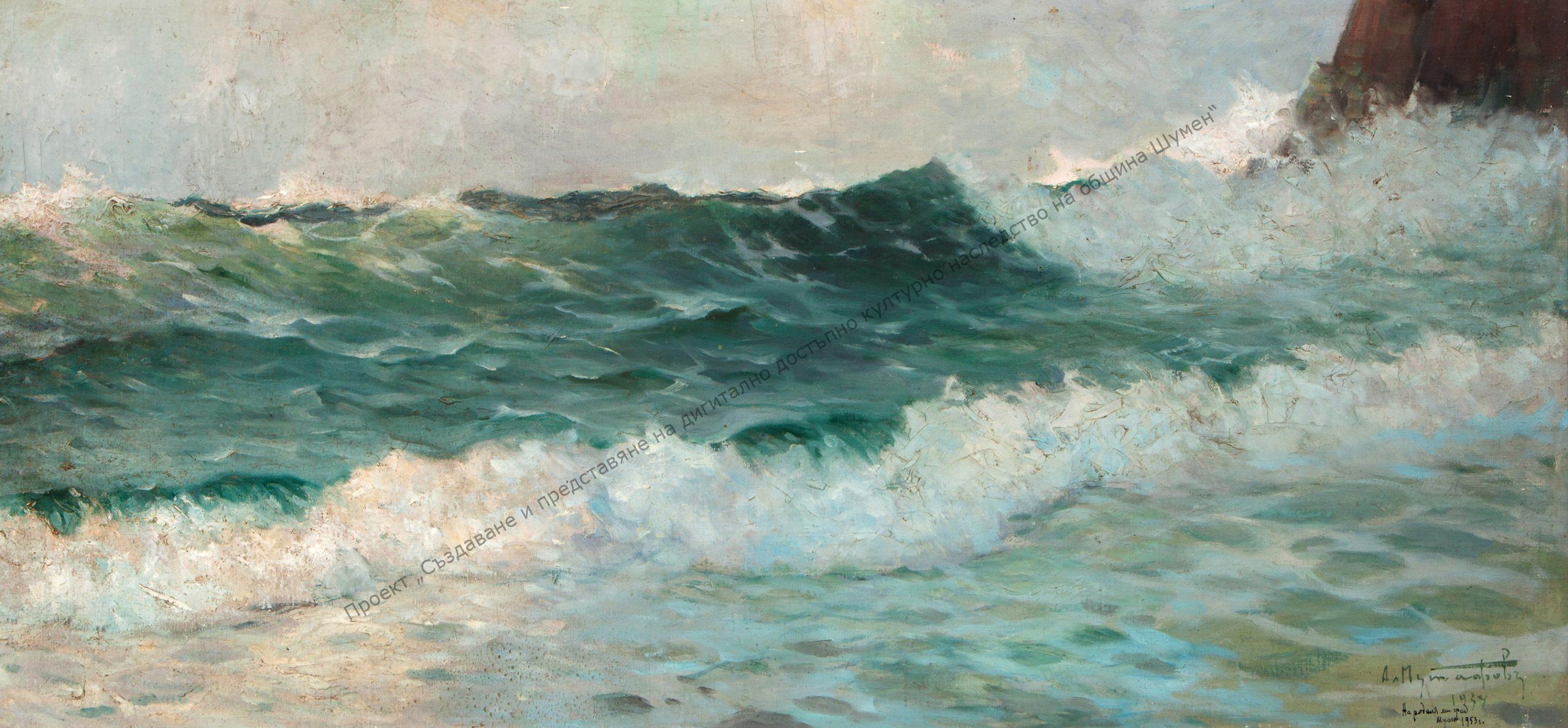 MUTAFOV, Alexander Nakov Mutafov (9.V.1879-1957). Born in Shumen. His parents moved to Varna and here, by the sea, the childhood of the future artist took place, a peak in the Bulgarian plastic marine art. Student of Anton Mitov in the Varna High School and of Nikolay Pavlovich in Sofia. Later he studied at the Art Academy in Turin (1899-1902) under Prof. Grosso and at the Academy in Munich under Prof. von Löftz. He held his first exhibition after his return to Bulgaria. He was a teacher in Dupnitsa, in Sofia, and from 1921 a professor at the Academy of Arts. After that, he devoted himself entirely to painting. Winner of the State Prize for Painting in 1937 for “Fisherman” and a silver medal from the Paris Exhibition of the year for “The Blue Boat”. He held 15 solo exhibitions, participated in all the art exhibitions of the “Contemporary Art” society, the “Native Art” society, and the SBH.